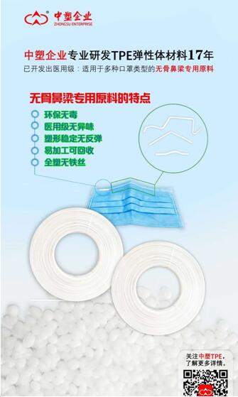 要想保障口罩的供應(yīng)量,少不了各種原材料,尤其是口罩鼻梁專用料,它環(huán)保無毒、醫(yī)用級無異味、塑形穩(wěn)定無反彈、易加工可回收、全塑無鐵絲。作為TPE行業(yè)的佼佼者,17年來,中塑企業(yè)始終專注于研發(fā)TPE彈性體材料,逐步成長為國際化的大企業(yè)。