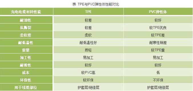 相比較之下,TPE材料則更為環(huán)保,安全無毒,而且具有耐低溫、質(zhì)量輕、易加工、柔軟富有彈性等諸多優(yōu)良特點(diǎn)。正因如此,目前業(yè)界人士對于用TPE取代PVC作為新的充電樁電纜的呼聲也越來越高。而且隨著技術(shù)的發(fā)展,TPE材料在耐油性上也有了長足發(fā)展,TPE復(fù)合材料的出現(xiàn)也開始滿足了充電樁對于線纜耐油性和耐水性的要求。
